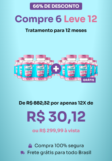 Happy Hair nas Últimas unidades disponíveis com kits de até 66% desconto! Faça o pedido da sua unidade hoje com menor preço.